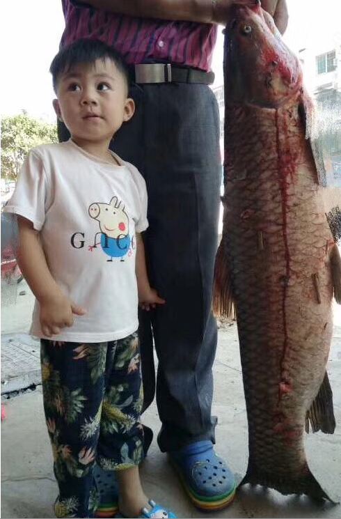 “好大的鱼啊!我长这么大还是第一次看到这么大的淡水鱼呢。”7月15日上午9时许,当袁幕辉将大青鱼拖回家,摆放在家面前的地上时,立即围过来许多人。看到这么大的鱼,大家异口同声,啧啧称奇。