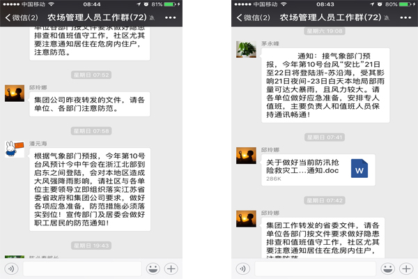 一是发布天气预警。及时通过有线电视、微信、QQ等宣传方式,告知职工居民台风“安比”来势情况,利用手机短信介绍基本的防范知识,提高应对能力。