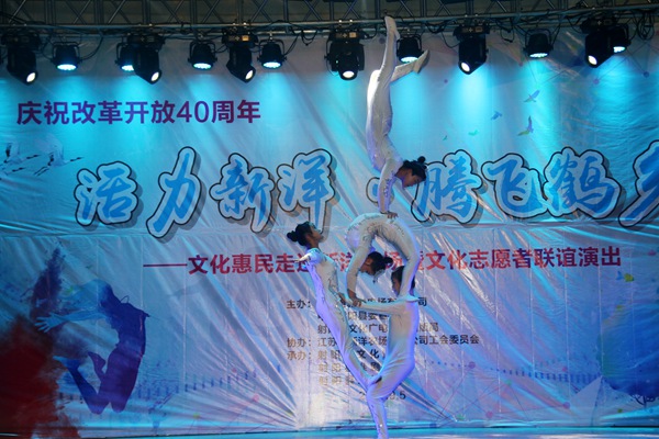 演出在开场舞《盛世欢歌》中拉开帷幕,女生独唱《美丽的丹顶鹤》、舞蹈《吉祥》、杂技《肩上芭蕾》、魔术《千变万化》等节目形式多样、层次分明,一曲曲优美的歌声、一段段赏心悦目的舞蹈、一场场精彩绝伦的杂技表演……将现场氛围渐渐推向高潮,最后,演出在舞蹈《美丽射阳》中落下帷幕。