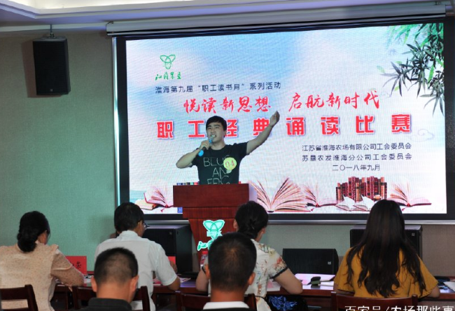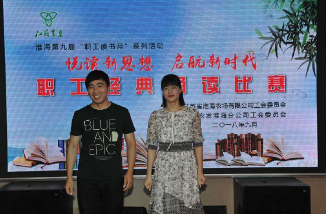 9月4日下午,在淮海工会举办“悦读新思想 启航新时代”职工经典诵读比赛上,来自二分场社区代表队的任超龙和机关代表队的栾艳彦在与来自淮海基层16个单位选手的比赛中,双双获得经典诵读二等奖。当他们夫妻携手登台领奖时,博得了现场60多名观众长时间的掌声。