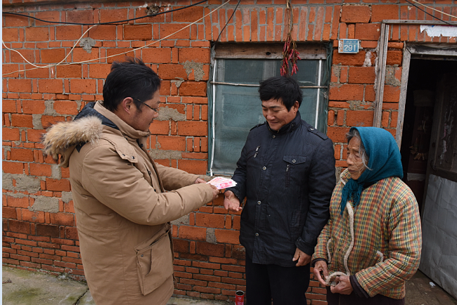 12月7日,大雪,今天突然的降温让大雪这个天气更是异常寒冷,而在淮海农场四分场社区建档立卡贫困户许忠祥的心中,让他觉得这个季节却是很温暖。因为让他感到意外的是,四分场社区职工代表、私企老板顾权东今天来到许忠强家,拿出1000元现金红包交给了他,并关照他天气冷了,要多添加点衣物,吃饱喝暖,注意身体。