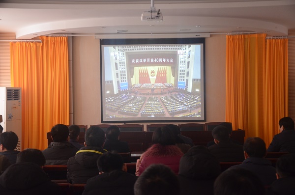 12月18日上午十点,苏垦麦芽公司组织观看庆祝改革开放40周年大会,公司经营层,班组长以上人员参加了观看活动。