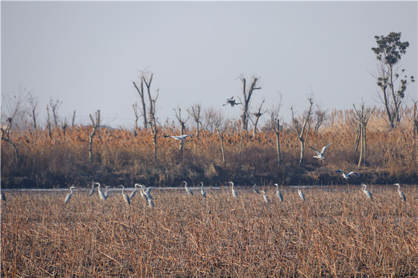 1月21日下午笔者在“云水湾”湿地公园内看到,成群结队的白鹭等候鸟这里栖息飞舞,全体云台人不仅爱护生态环境也友好对待鸟类,共同维护人与白鹭和谐共处的美景。