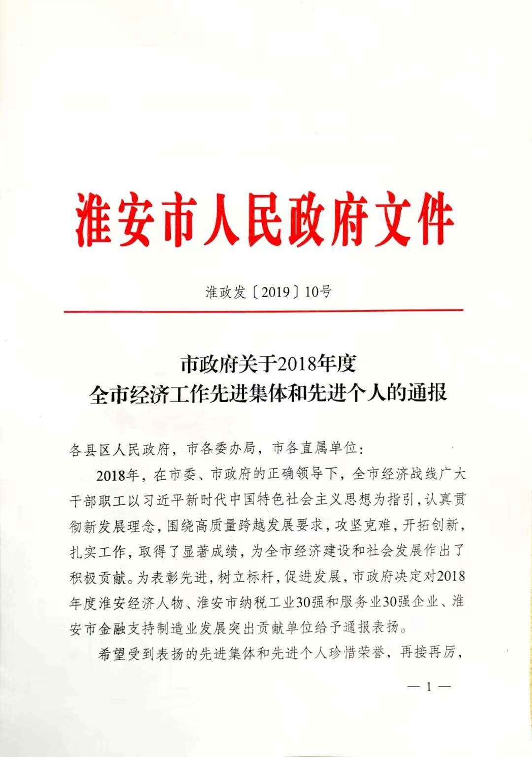 为表彰先进、树立标杆、促进淮安地方经济迈向高质量发展行列,近日,由淮安市人民政府发起和组织开展的“淮安经济人物、淮安市纳税工业30强和服务业30强企业、淮安市金融支持制造业发展突出贡献单位“评选活动在淮揭晓并正式向社会发布,正大清江制药以年纳税额超亿元荣登2018年“淮安市纳税工业30强企业”第15位,至此正大清江制药已连续两年跻身“市纳税工业三十强企业”行列。