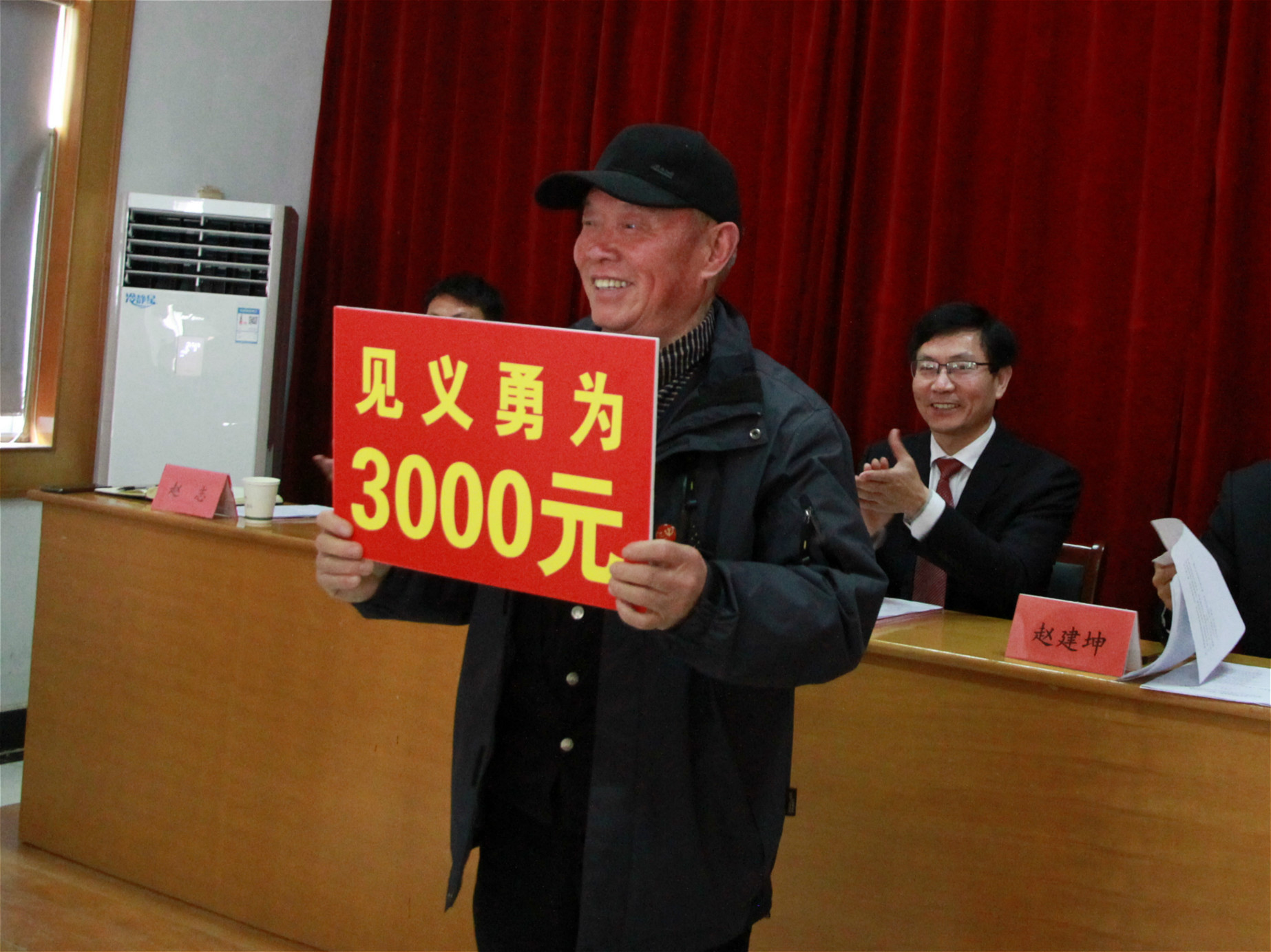 3月6日,宝应湖农场有限公司党群工作会议上掌声雷鸣,农场公司见义勇为英雄朱寿成手捧奖状、奖金,接受了大家的礼遇。