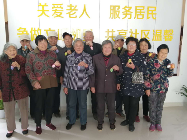 七彩画笔美化立夏“蛋”。事先准备的手工“蛋”穿上七彩衣裳,在老人们的手中变得绚丽多彩,服务中心内盛满了五颜六色的“彩蛋”,让老人们深深体会到节日的氛围。