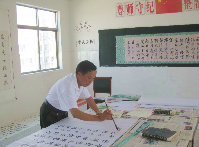 所悉,陈必祥无论在教学中还是平时的休闲时间,多年来一直潜心研究书法艺术,是中国书画家协会理事,作品多次获得国家和省、市、县大奖。每次农场公司书画书法协会组织作品展示时,他都要写出几张作品应征。图为陈必祥在展示书法和作者近照。