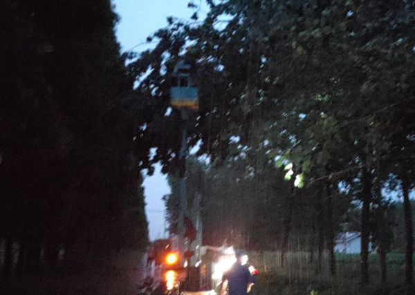 抢修人员立即动手对树木进行清理,此时,凶狠的蚊虫也向大家发动袭击,雨水和汗水也很快湿透了衣服,大家全然不顾,紧张地工作,经过1个多小时的奋战终于在8点30分排除了故障,恢复供电,看到明亮的灯光,大家心里充满了自豪和高兴!