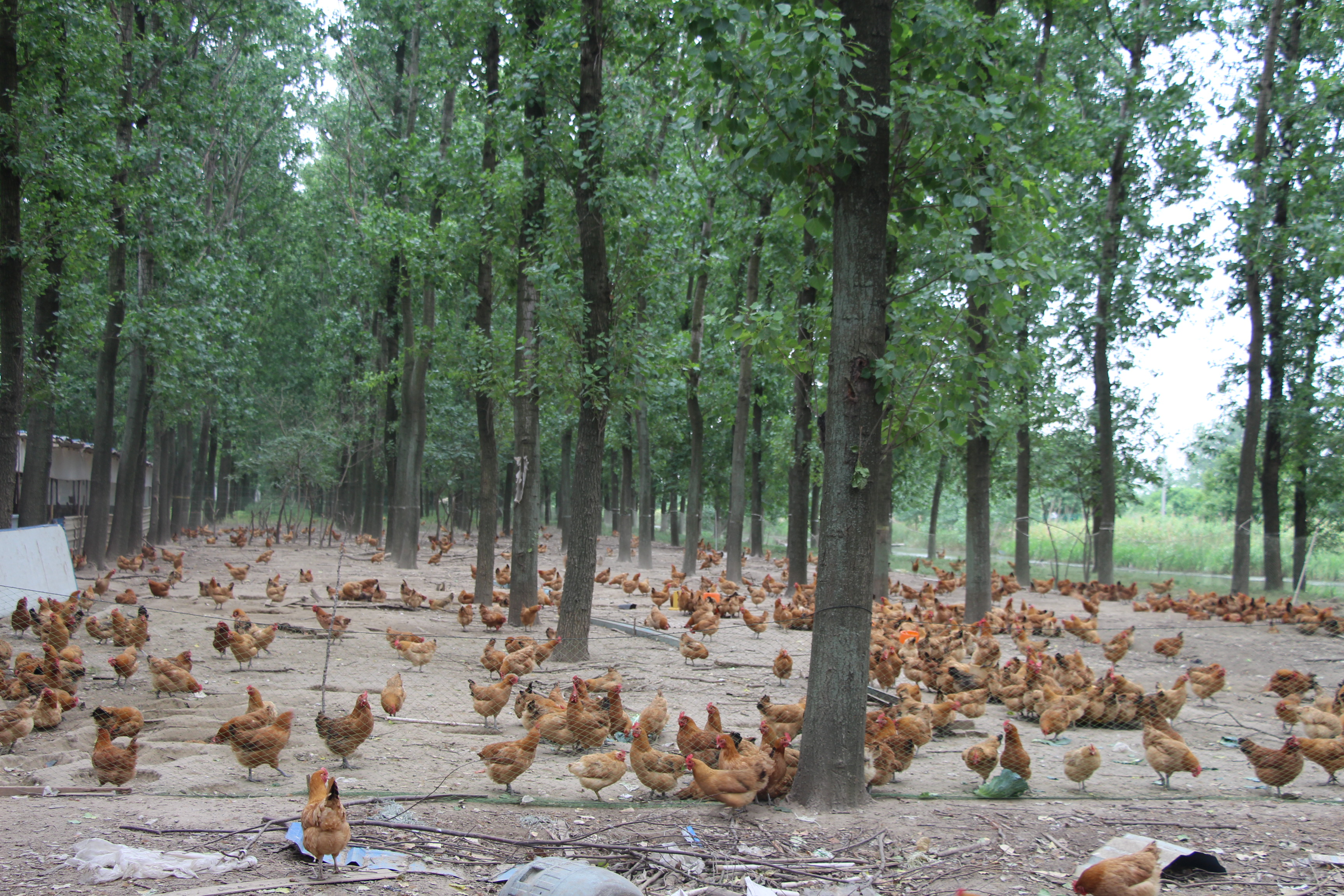 海安农场场部的南边是农场三大队,走进三大队,一片树林便映入眼帘,不远处听到连绵不断的鸡鸣声,走近一看,原来是一个林下养鸡场,鸡场的主人是一位年仅36岁的年青人,他名叫田佳斌,来自如皋市江安镇。