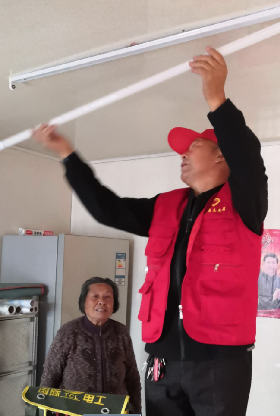 辛滨丰是小区里出了名的大嗓门,他热心公益事业,除积极参加单位组织的志愿活动的同时,他还践行“雷锋”作风,不管是哪家的线路出故障了、水管漏了、下水道堵了,还是哪家夫妻闹矛盾、邻里发生纠纷,他总是出现在现场。人们有解决不了的问题,总是请他这个“智多星”前来解决,他所住的辖区,有近百个“三老”人员和相对困难家庭,他总能把他们当作自己的亲人一样,聊家常,问寒暖,尽自身所能给予一定的帮助,成了大家的贴心人!图为辛滨丰为他人在修理水龙头、更换电管时的镜头。