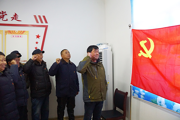 活动现场。城东党支部书记邱金龙带领老党员们面对鲜红的党旗,举起右手郑重宣誓,重温入党誓词,党员们再次许下铮铮誓言:“我愿加入中国共产党,拥护党的纲领,遵守党的章程……永不叛党。”该活动进一步增强了全体党员的责任感和使命感。