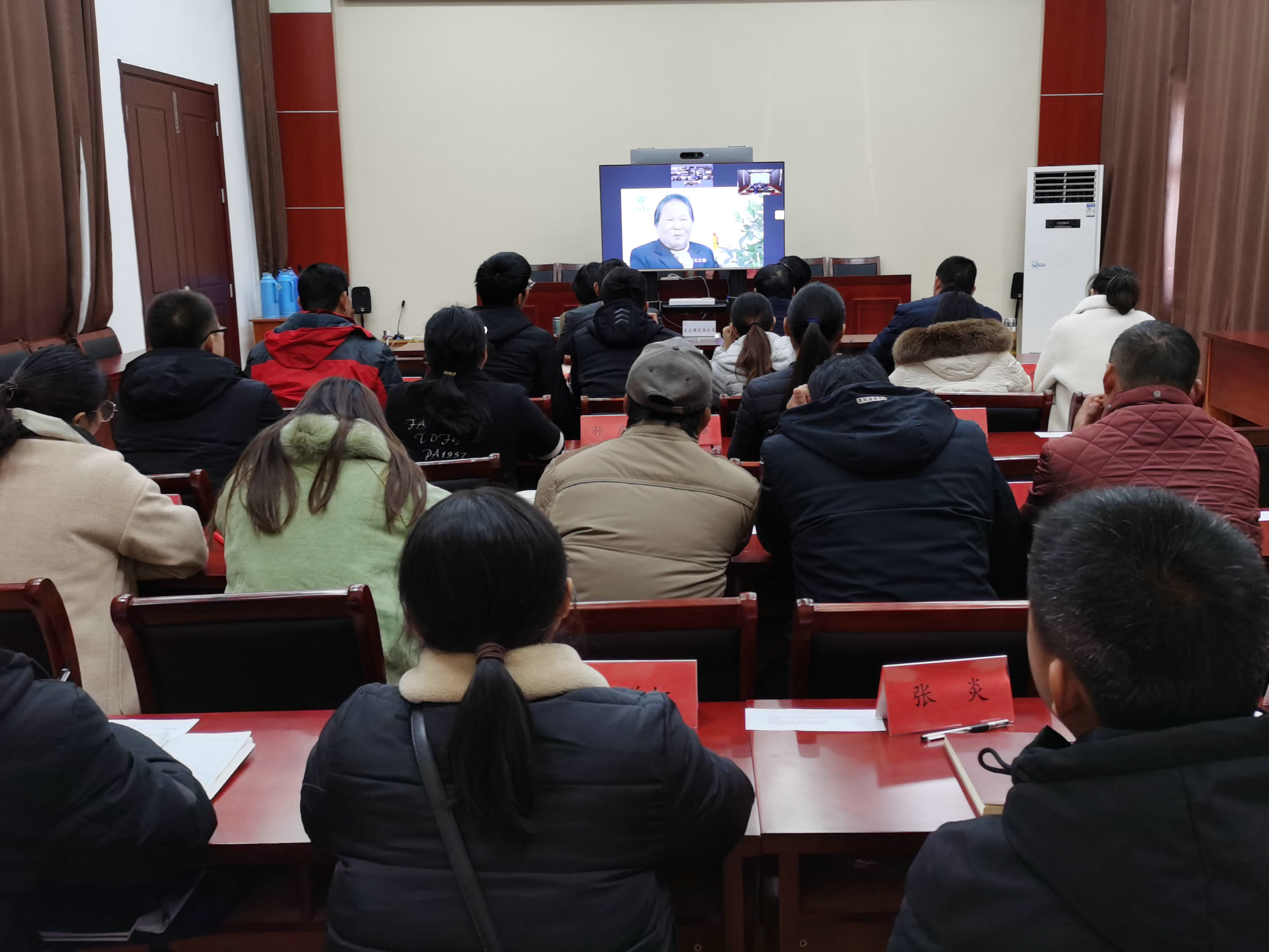 上午8点50,农场公司党委书记李乾清、纪委书记王芹、党委工作部相关人员和基层信息员29人准时到达了视频会场。