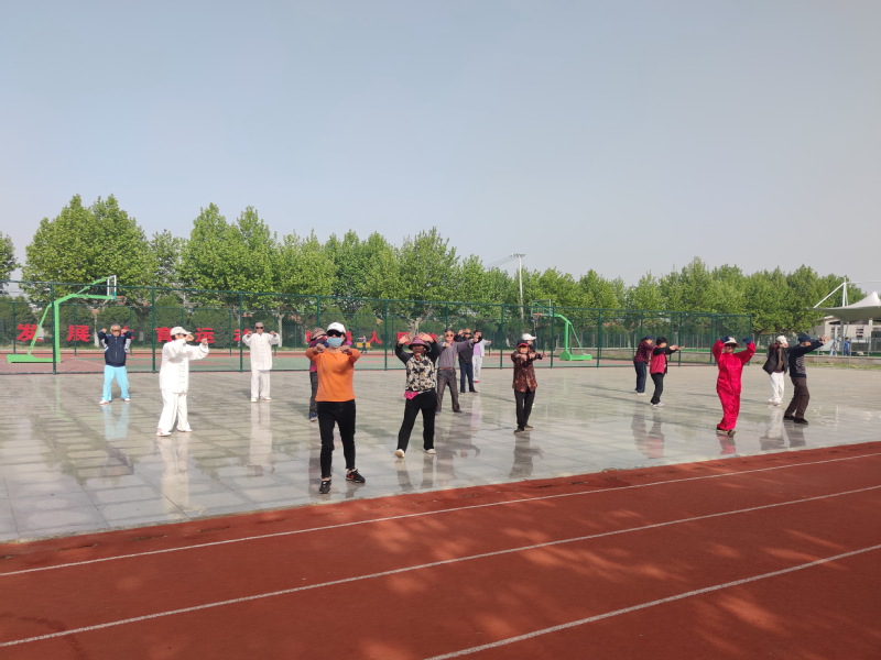 太极拳能强身健体的好处,让越来越多的农场职工居民加入到晨练队伍中来,每天早起练习太极拳、进行晨跑和器材锻炼,日已成为很多职工居民的生活习惯。