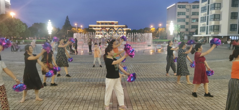 近年来,在淮海农场社区各基层单位,为了满足各个单位的职工居民对美好生活的向往,农场各基层单位的工会通过鼓励文艺爱好者牵头,组建了多年文艺志愿服务队的形式,带领着各个单位爱好舞蹈的姐妹参与到文艺节目的活动中来,因此她们牵头成立的一支又一支舞蹈队相继成立。随着时间的推移,这些文艺表演队伍由小变大,队伍也在不断壮大,相应也诞生了一个又一个文艺达人。这些队伍中,主要是由农场的退休大妈们组成,他们是享受着经济社会发展红利的同时,大家也是本着健康健身娱乐的目的,每晚相约在农场各个广场、小区、公园等公共活动场所来练习舞蹈,每天上演的广场舞、交谊舞、健身操以及太极拳、太极剑等健康体育文化活动,成为了淮海农场社区一道靓丽的风景。