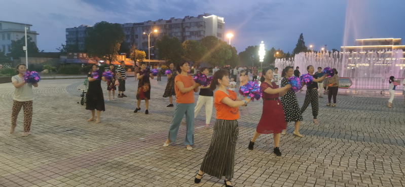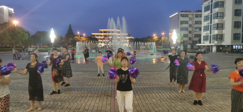 文化广场,一直是淮海这方土地上的职工群众跳广场舞的“根据地”之一。在音乐喷泉南北两端,活跃着两场广场舞健身队,在他们这些表演队伍中,参与者大多是农场社区退休的职工居民及周边农村的中老年人,其中大部分是大妈级的中老年人,也有部分是七八十岁的大爷参与其中,他们虽已人过中年,但农场对健康体育文化的重视和多平台的搭建,让大家走出户外,以曼妙的身姿,展现出农场社区职工居民的知性和优雅。