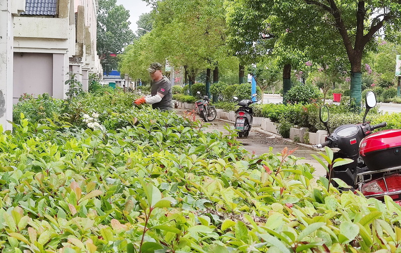 我们在现场看到,虽然这段时间以阴雨天气为主,但气温有时也显得较高,农场社区绿化环卫所里的职工,充分抓住当前气温正常有利户外作业的时机,在抢雨隙中在绿化带、绿化地及花池中深入细致的进行除草剪枝整形工作。通过开展连日来的精心管护,使各个绿化带、绿化地上花的苗木花草及草坪生长得井然有序,焕发出勃勃生机。