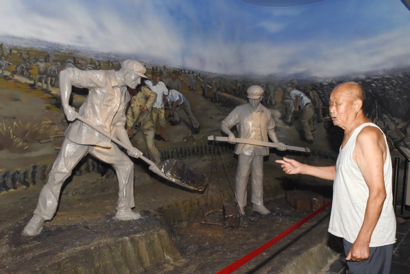 “这个人叫‘仇大筐’,原名叫仇泉,他一付担子能挑400斤;那个人是‘江大锹’,原名江希友,他一锹能挖100斤,乖乖,这两个人都是农场的特殊功臣,让大家很是尊敬!”虞明生站在生产场景的雕像前说着。这幅生动的生产场景,仿佛把他又带进了建场初期的战斗场景。