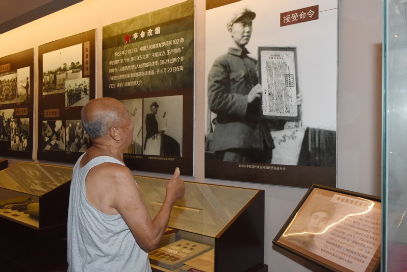 8月7日下午,乘农建四师陈列馆有客人来参观,居住在陈列馆约百米远的老军垦虞明生又一次走进农建四师陈列馆中,通过观物抚今,借此来怀念战友,回忆建场初期那些峥嵘而又艰苦的难忘岁月。