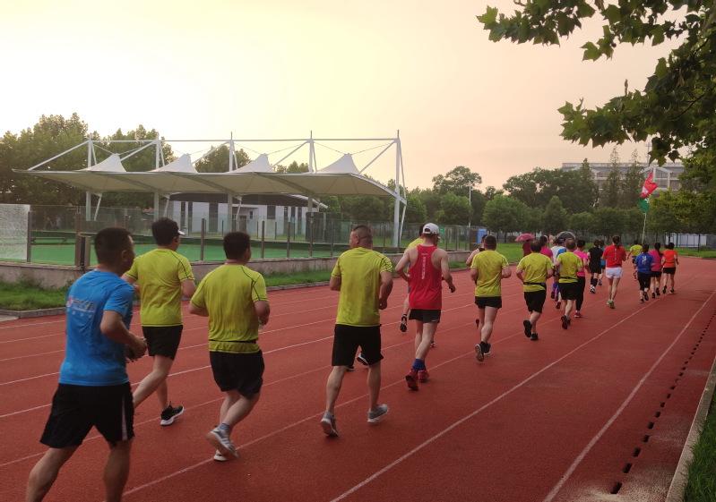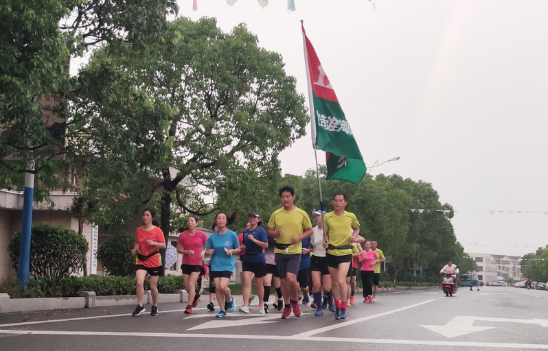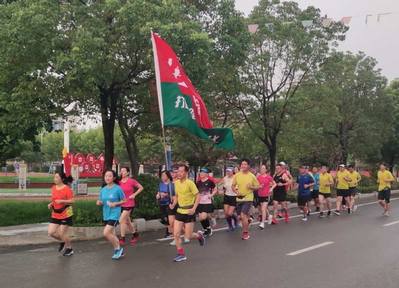 8月10日傍晚,在淮海农场场域内的道路上,一个20多人的马拉松跑步方队引起了农场职工居民的注意,大家纷纷侧目,观看着举着“打造淮海健康文化”字体的淮海跑团标识旗帜在行进着,这一特殊的跑步方队特别耀眼,成为农场一条亮丽的风景。