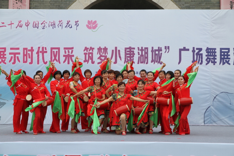 1月,农场迎春演出;5月,国际马拉松比赛金湖站的加油点演出、县达人秀比赛;6-7月,金湖荷花节演出;9月,金湖县全民健身展示活动、农场广场舞比赛;10月,淮安市老年广场舞比赛;12月,淮安市第一届民俗运动会腰鼓比赛、金湖县邮政演出活动等等,2019年,宝应湖农场腰鼓队的演出行程被排得满满当当。腰鼓队先后获得了金湖县老年广场舞比赛二等奖,金湖县体育局健身操比赛三等奖,还代表金湖县参加淮安市第一届民俗运动会腰鼓比赛,获得三等奖。
