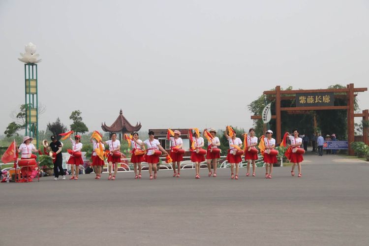 6、7两个月间,每次表演,队员们都提前半小时来到舞台。走场、亮嗓,在锣鼓和铙钹的引领下,腰鼓队拉开架势,时而大开大合、力度饱满,激烈的鼓点似绿叶下的精灵在跳跃欢呼;时而轻舒柔美、整齐划一,轻盈的舞姿如花丛间的仙子在翩翩起舞;舞动着“接天连叶无穷尽,映入荷花别样红”美丽画卷,成为万亩荷花荡景区一道亮丽的风景。