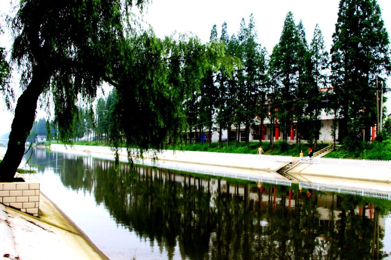 图为中心河畔风光美