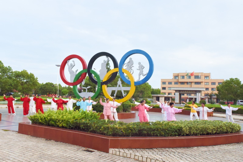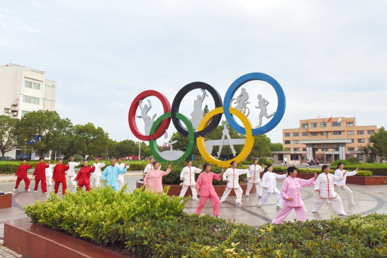 太极拳文化博大精深,在中国有着悠久的历史,也是祖国文化不可多得的瑰宝。同样在淮海农场那些平均年龄达70多岁的老年人,他们每天把太极拳轻柔舒缓、强身健体的拳法演绎得淋漓尽致,特别是那些太极老人们那种娴静优雅,自然从容的境界,展示了太极拳的美,特别是他们在文化广场五环雕塑下展示那行云流水式的太极拳,那优美的韵味,洒脱的肢体语言,美得让人心醉。