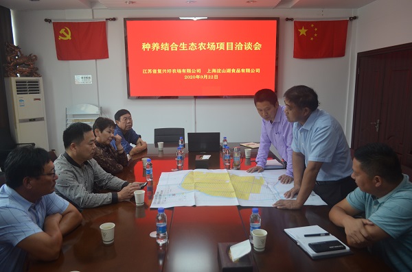 招商引资是加快经济发展,推动产业结构转型的重要抓后,复兴圩强化招商引资工作,多渠道探索农场公司产业发展,9月22日下午,上海淀山湖食品有限公司董事长周雪良一行到复兴圩农场有限公司考察洽谈生态种养结合产业合作,农场公司领导赵军场、苏学军、周国才陪同考察。