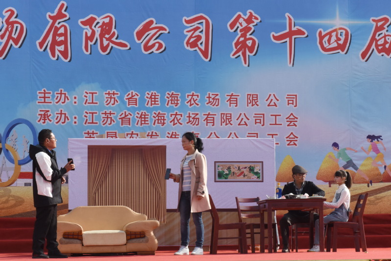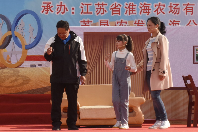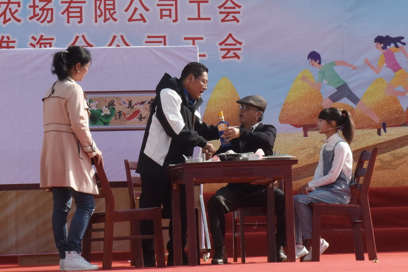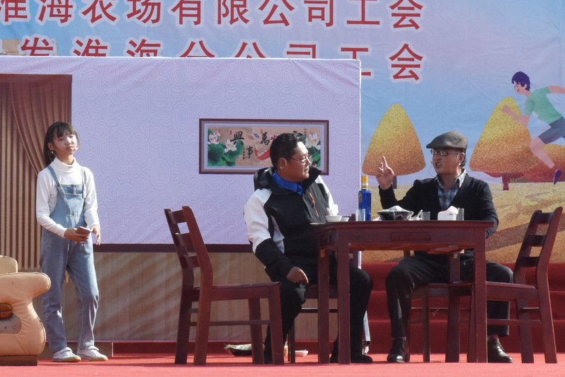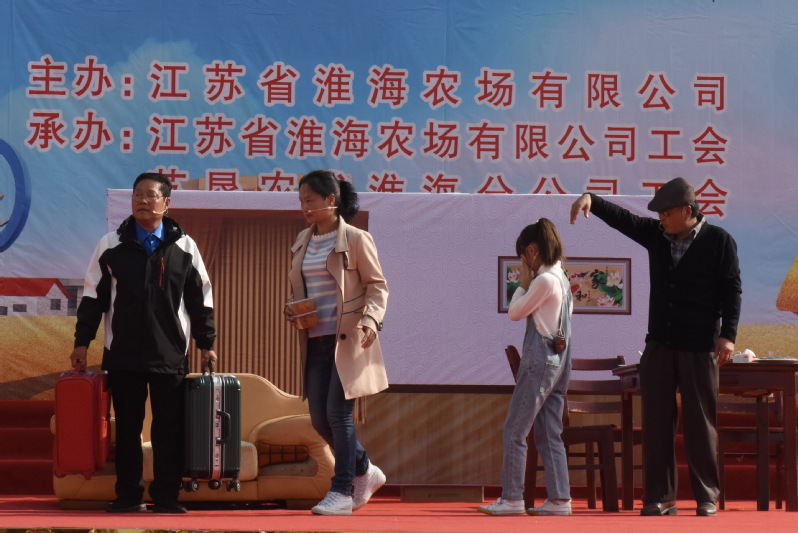 9月28日下午,在江苏省淮海农场有限公司第十四届广场文化节上,由编导顾权东表演者顾权东、高月秀、王心悦、曹龙兴等共同编排了小品《年夜饭》,通过夫妻双方在对方不知情的情况下,都报名参加了第一批去武汉医疗队报名的故事,彰显了一名护士长和感染科主任舍小家为大家的情感经历,同时他们又不忘亲情的牵挂,在吃年夜饭之前,匆忙来到父亲的家中,告别父亲和女儿奔赴武汉抗疫一线的离别故事。整个小品演出逼真、故事情节感人,触及到了许多观众的小点,既让人看了凄然泪下,痛恨新型冠状病毒感染的肺炎疫情的可恶,又感受到了作为医护人员国家有征召,必出战的感人事迹,反映出了全国人民,特别是医护人员在党中央的正确领导下,在团结一致战疫情进程中,以弃小家为大家的精神,来齐心协力战胜病魔的感人故事,为本次广场文化节增添了新的亮点,也彰显了国家对人民群众身体健康高度负责的精神,从而赢得了全国人民的支持,取得了抗击疫情的阶段性胜利,也为全世界人民作出了榜样。图为《年夜饭》剧情。