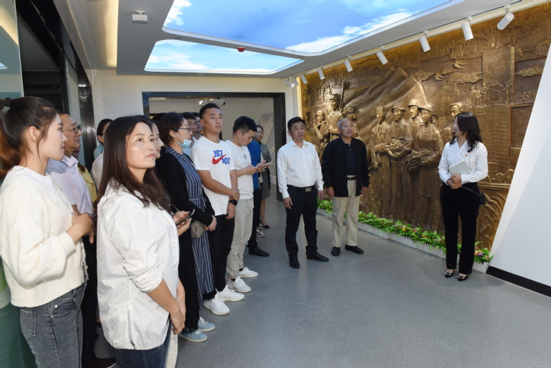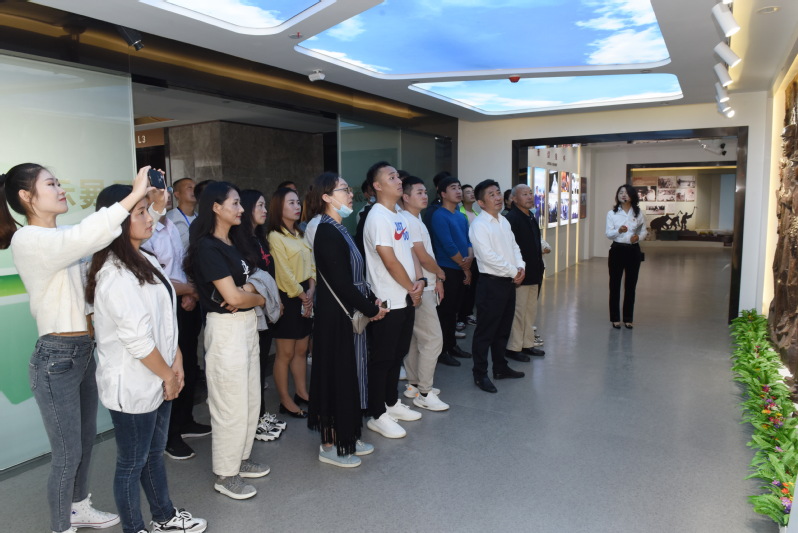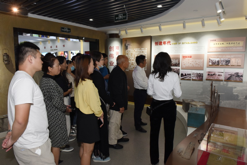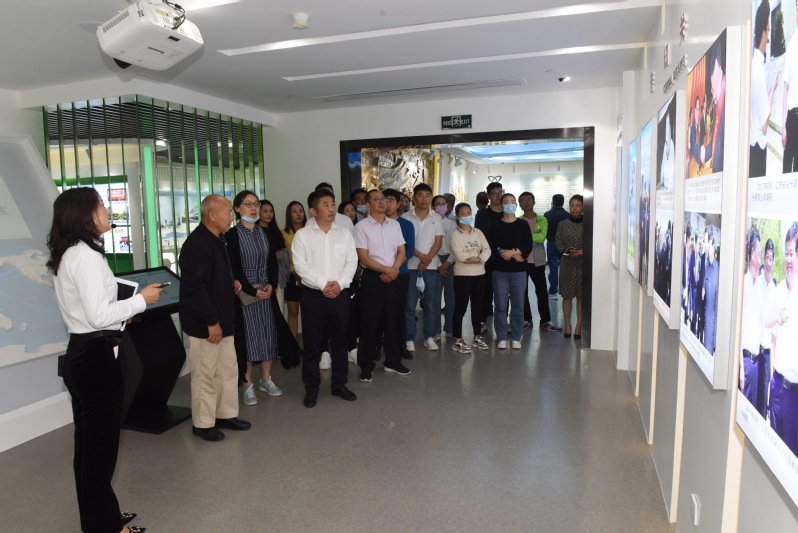 10月12日上午,淮海农场有限公司20多名成功表演完江苏农垦第二届青年员工论坛文艺演出的青年员工,为了借本次参加集团公司“传承苏垦文化,展示时代风采,创造美好未来”进行舞蹈《我们都是追梦人》和情景剧《奋斗的音符》表演的机会,他们在农场纪委书记孙国祥和工会负责人的带领下,还特地申请并来到江苏农垦展示厅,依次参观了“序篇”“创业篇”“改革开放篇”“展望篇”四个部分,进行学习江苏农垦精神,了解江苏农垦的发展历程。同时也让来自江苏农垦摇篮的淮海人,在集团总部通过一次参观和聆听农场外的讲解员,来讲述关于以淮海军垦文化史实为开篇的江苏农垦发展史,让大家也再一次切身感受到了军垦传统文化的实境教育,并对江苏农垦的创业、改革、建设、发展、奋进史有了进一步的了解,让青年员工们在与江苏农垦广大青年员工们一起,接续“打造新航母 奋进新时代”新征程的激发和使命,从而在勇于奉献中,贡献青春和力量。图为淮海青年员工在参观江苏农垦展示厅时的镜头。