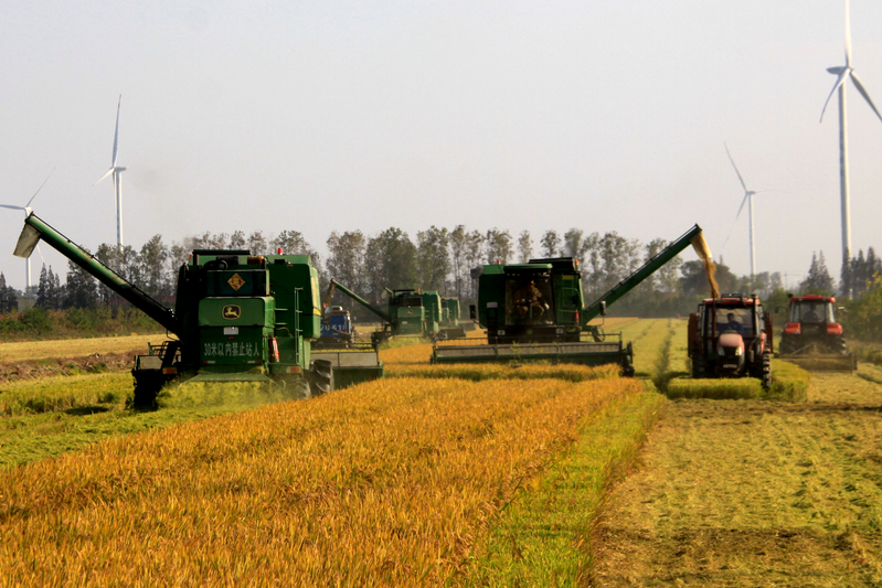 三秋战斗在新洋分公司全面打响,机耕队各类机械全面出动协调作战,有序推进收、种、管的进度。