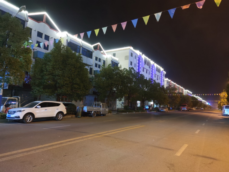 农场还大力开展绿化、美化、净化、亮化工作的过程中,现在随着新时代文明实践所建设步伐的加快,在淮海路上即将建设一个跨路宣传展牌,在两边的花池中建设路边灯箱,届时农场的夜色就会更美、更亮,人文景观的氛围就更加浓厚。图为夜色中的淮海路景观。