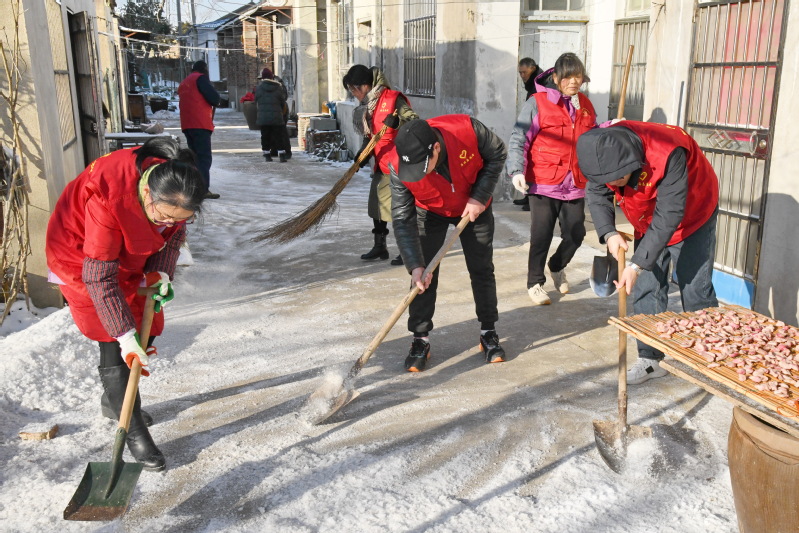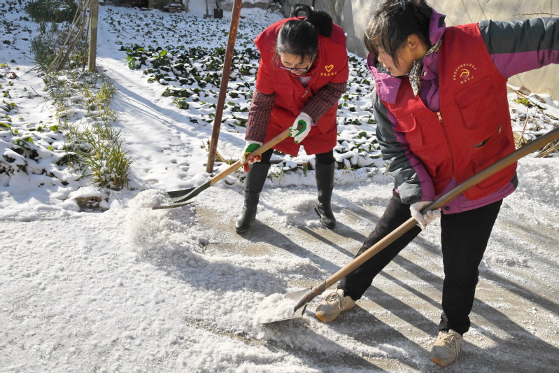 在这些老年职工居民的住房前、过道上,志愿者们齐心协力清扫积雪,有的扫,有的铲,有的推。经过一个多小时的紧张劳动,家属区门前及道路上的积雪和冻冰被打扫得干干净净,清除了积雪和冰冻带来的容易滑倒的安全隐患,为老年人在冰地雪天行走安全创造了良好的环境。