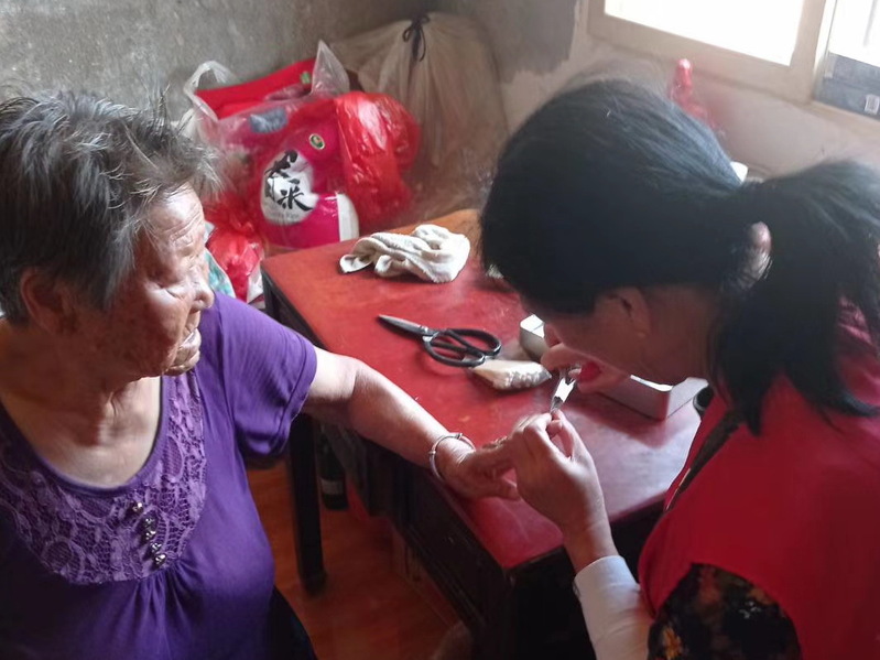 据了解,年龄达到80岁的老人,在淮海是极其庞大的一个群体,许多老人家庭、甚至一些孤寡老人因为子女不在身边而承受着异常的孤独,有时还要备受病痛的折磨。而淮海居家养老照护员的出现和居家养老社会服务的开展,无疑为他们开辟了一条亲情式的服务通道,能让他们在养老服务和社会各界的亲情关爱中,享受颐养天年之乐和生活的美好。图为金实银康居家养老服务人员在上门服务时的镜头。