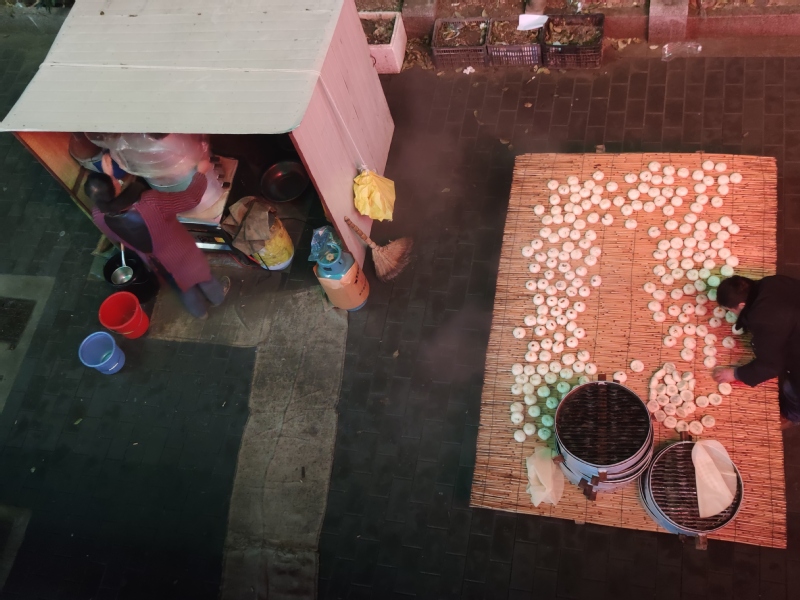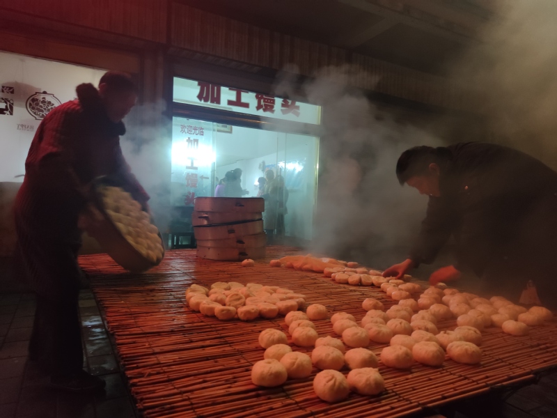 由于贾长梅的馒头加工店,加工出来的馒头外形佳、口感好、加工的价格又低于同行,于是让她经营的店成了当地职工居民优先选择的店铺。而对于周边的职工居民或是远地来的农村群众,她一不做广告,而不主动去邀请,她家招揽生意的绝招全凭大伙们的往年的体验和口碑的传输,当然,在价格上她在农场区域里也有竞争势头,回头客撑起了她家绝大部分客户。你瞧,今年蒸馒头已经开始一个多星期了,我们在现场热气腾腾的现场和香味扑鼻的味道就可以感受到,贾长梅的今年生意是有多么地红火。图为周边的职工居民在这里收拾蒸好的馒头时的镜头。瞧,在远处记着我拍照时的贾长梅笑得是多么地开心。