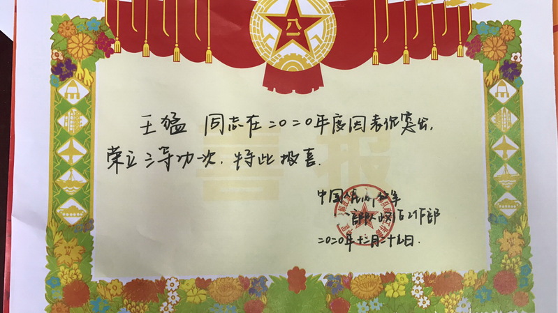 1月21日下午,淮海农场社区人武部负责人收到了一封来自部队上书“听党指挥 能打胜仗 作风优良”字样的喜报,打开喜报一看顿时高兴坏了,原来这张由全球邮政特快投递投来的喜报,是中国人民解放军某部政治工作部在去年12月29日寄出来的,这张红色的喜报是委托农场社区人武部送给淮海农场社区城南居委会王成明家的,喜报上书:王猛同志在2020年度因表现突出,荣立三等功一次,特此报喜。这份喜报一经拆开,立即引起了农场社区一站式办公大厅内工作人员的传阅。