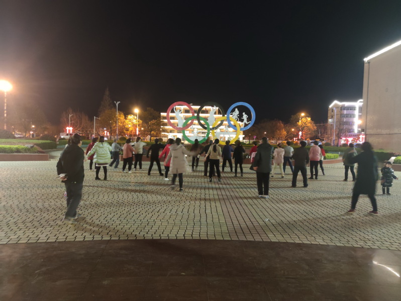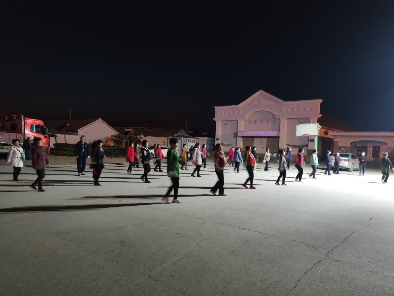“过去他们只是坐在台下看,现在有了‘健身平台’,我们也成了主角,舞蹈能跳,广场舞更是不在话下,大家旁若无人的表演,丁点儿也不吃场,个个表演的天赋及精气神可足了。”经常带着大家编排广场舞的舞蹈教练缪士美乐呵呵地说。她脸上幸福的笑容,诠释着近年来淮海农场文化惠民工程和打造的健康体育文化,给职工群众带来实实在在的好处,也让能歌善舞成为淮海舞蹈大妈们的拿手好戏,让她们一个个地成为职工群众文化生活中不可或缺的文化艺术。各类基层文体协会汇聚了众多的文艺骨干和爱好者,他们在每年农场的广场文化节、各类文艺表演或是参与周边场乡共建文艺活动中发挥了重要作用,带动了周边职工群众共享淮海文化发展的成果,进一步弘扬军垦传统文化,同时也在大家的积极参与中,成就了淮海文化大场的美誉。图为农场夜幕下的舞蹈文化活动。