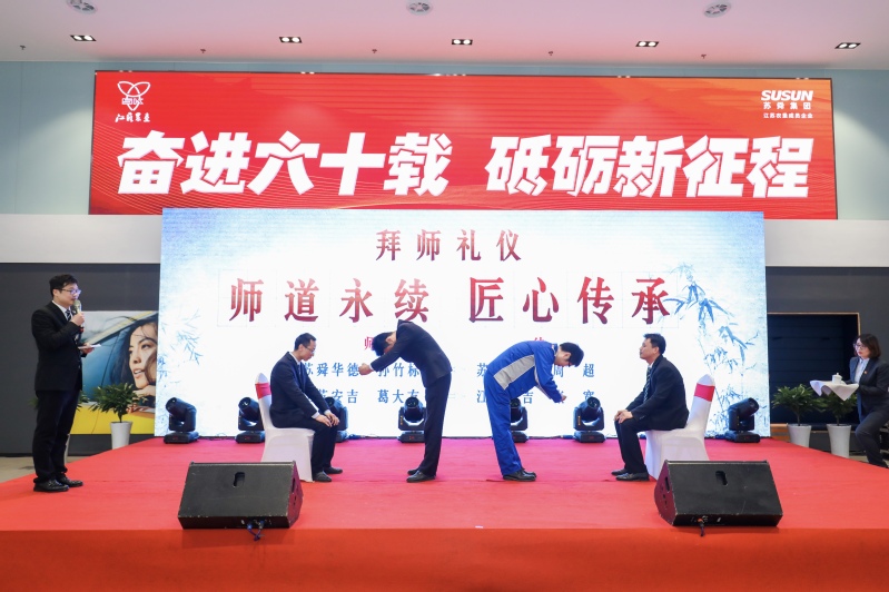 活动中,苏舜公司党委书记、董事长孙继洲和总经理曾庆业分别致辞,现场播放了苏舜发展历程VCR,老员工代表及师徒代表分享了情浓苏舜故事,参加庆典活动的领导和员工观看了节目表演。