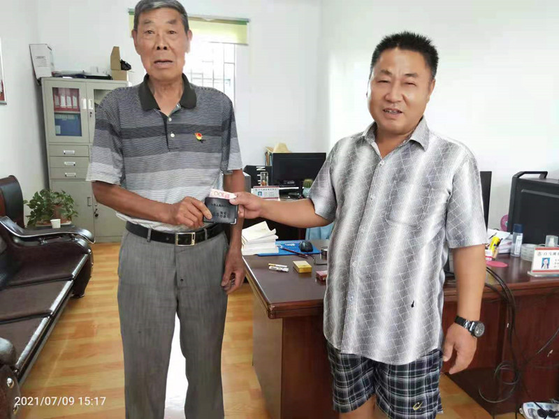 7月9日中午,白马湖健康居委会党支部84岁老党员张善广途径经三路与省道328连接处,捡到了一本驾驶证,他前后左右看了看,没有一人,他等了一会,盼望着可以等到失主,可是仍然没有等到,为了尽快联系上失主,他又请居委会的同志帮忙。在大家的见证下,经过查找联系核实,失主系谢某某,驾驶证里面有现金510元,还包含了一张银行卡、一张身份证、一张医保卡和一些票据。在当面核对了丢失的物品及现金,失主对丢失的东西能失而复得十分意外、也十分感动,当面拿出现金想表示感谢,但被张善广婉言谢绝,最后只是高兴地答应了与失主合影留念的恳求。