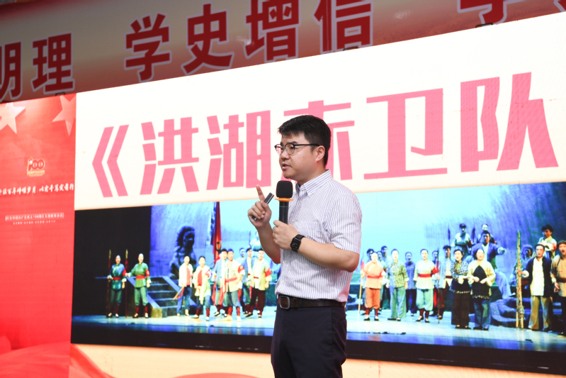 活动邀请洪湖市委宣传部副部长崔巍作《复兴不忘来时路,革命常思洪湖水》专题培训。崔巍详细介绍了湘鄂西革命根据地在中国共产党最困难的时期保存革命火种、建立红色政权的光辉岁月,对“艰苦奋斗、百折不挠、勇往直前、去战胜每一个困难”的洪湖精神进行了深入解读。
