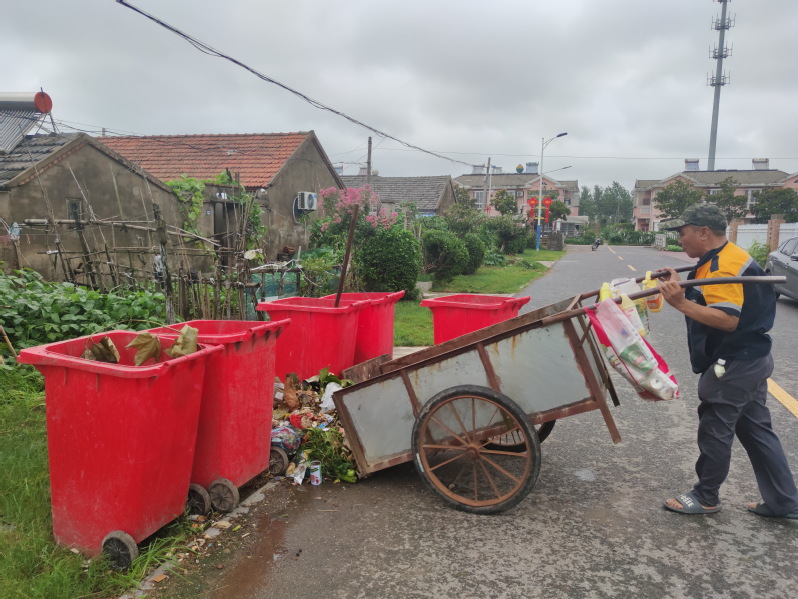 昨天下午,我在淮海农场振兴路一侧看到,农场城西环卫工工何亮明在汗涔涔地挥舞着铁锨,将一家一户收集并用拖车拖来的垃圾,又铲到路旁垃圾桶里的镜头。闻着夏日垃圾散发出来的异味,我的心里不禁感叹着,一个路人对这刺鼻的臭味异常敏感,何况一个每天3个多小时中,泡在这味中的环卫工人。也正是他们的辛勤付出,换来了农场环境的美好和好心情。