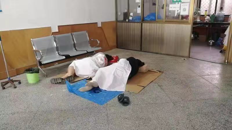 自封闭以来,她们每天24小时值守在淮化诊所,没有一天在12点前休息。席地便睡着了是常态。