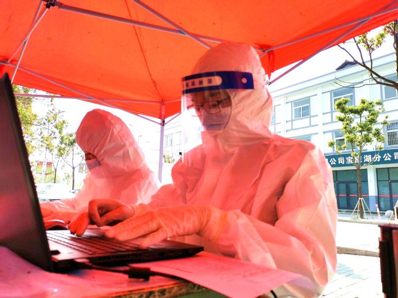 在宝应湖农场固定核酸检测点,有这样一群人,他们身穿白色防护服忙着测温扫码、维持秩序、采集信息……,“您好请扫一下场所码,近期没有外出吧?”“您好,我给您测量一下体温”“请大家保持一米线,核酸做完及时离开,不交谈不聚集”一句句叮嘱传递着疫情期间的浓浓关怀,在大家的耳畔久久回荡。