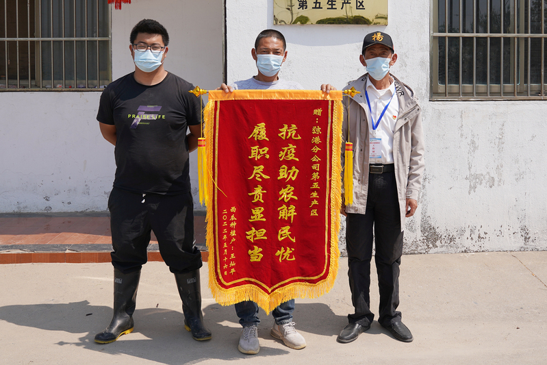 “我种了44亩西瓜,3天就销售完了,毛收入50多万,净得20多万元。农场的各级领导为我们种植户付出太多太多,我代大家表示感谢了!”。5月16日一大早,弶港农场西瓜种植户王灿平来到第五生产区送上绣着“抗疫助农解民忧,履职尽责显担当”的锦旗,脸上洋溢着丰收的喜悦,朴实的言语饱含着感激。接过鲜红的锦旗,生产区主任杨定贵笑着说,再苦再累,工作能得到西瓜种植户们理解和肯定,所有的付出值了。
