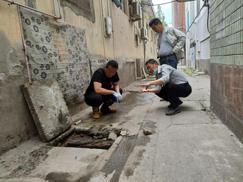 5月19日下午,新洋社区城西居委会党支部书记蔡文良带领党员王强及居民组长一行在一号楼前面清理下水道。早在两个多月前,一号楼就出现了下水管堵塞的现象,由于无人维修,堵塞问题日益严重,管道污水逐渐上涨,漫延到地面,妨碍了楼内居民的进出。
