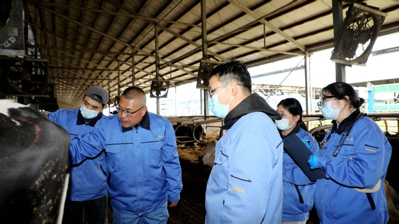 东旺奶牛公司生态养殖示范场存栏奶牛4800余头,日常的奶牛管护、产后护理、转群分群及病牛治疗等工作任务十分繁重,兽医组严格遵循“日巡查+周例会+月巡诊”的工作机制,通过巡棚查看、巡诊交流,全面了解掌握牛只的健康与成长状况,做到有检查、有治疗、有回诊,保障疫病防控和奶产品安全供给。“每个月,周主管都会定期带我们进行巡诊,现场诊断指导,我们的业务水平有了明显提升,工作起来也更得心应手了。”兽医组工作人员杨华说。东旺奶牛公司始终坚持人才强企理念,通过师带徒、老带新和技术培训、技术交流等形式,不断提升兽医人员专业技能水平,奶牛乳房炎、肠炎、蹄病等疾病发生率有效降低,在牧场提单产、降成本、增成效方面发挥出积极作用,助力东辛畜牧业高质量发展。