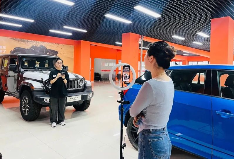“牧马人原厂配备全地形255 75/R18轮胎、中控触摸屏由8寸升级到12寸、涉水深度达760mm。”苏舜锦尚公司(Jeep4S店)主播陈佳琪正通过直播间为客户360°全方位展示和讲解车辆配置,她耐心地解答客户问题,1名客户已成功预约进店。