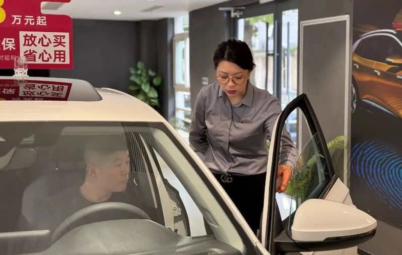 苏舜安吉公司(上汽大众4S店)销售顾问张艳,正在认真地给客户讲解新车功能配置,过程中她凭借自己的专业能力逐一解答了客户关心的问题,成功签单。