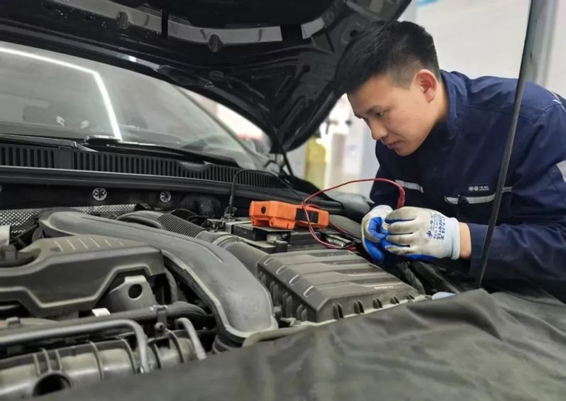 苏舜恒通公司(一汽大众4S店)机电技师张凯正在排查一辆迈腾车的发动机故障。他说:“今天修好了一辆故障复杂的车,感觉自己的耐心和技术都得到了锻炼和提升。”