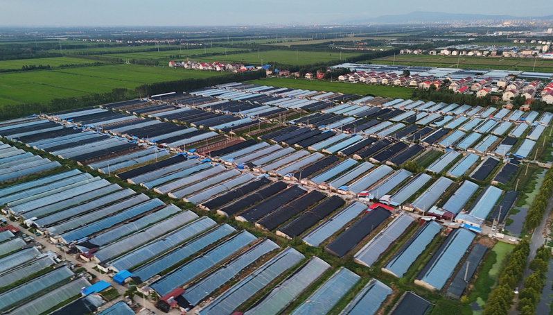 8月26日,连云港市海州区的江苏农垦岗埠农场,千座温室大棚整齐分布在大地上,与村庄、农田、树木、河流自然融为一体,构成乡村振兴的美丽画卷。徐卫 方冉冉 摄